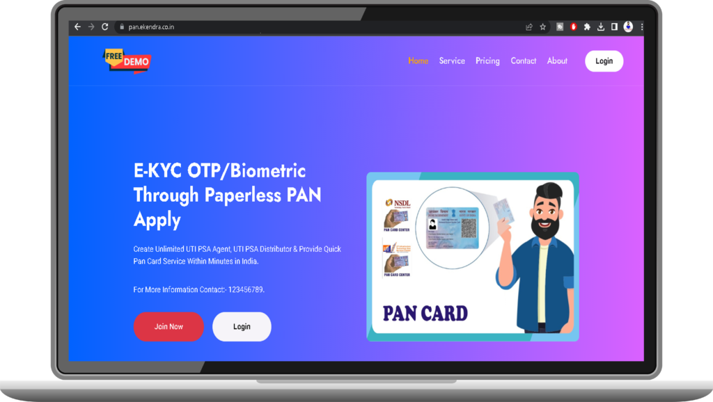 We are providing pan card white label portal for your business. Here you can create unlimited pan card, recharge, etc agent, pan card distributor with full admin control panel. You can upload your company logo. If you want to business with pan card white label then is best for your company. does not provide only Pan Card API / White Label Pan Card Portal, provides complete solutions for your business. During the journey we have 20000+ pan card center in our country.